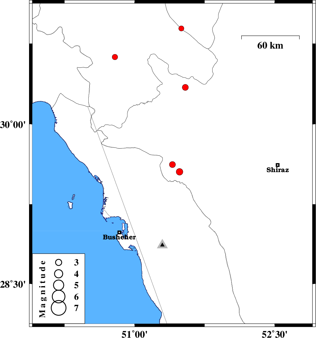 2016/03/20 | 21:57:14.8 | 02:27:14.8 | 29.622 | 51.405 | 6 | ML3 | Fars Province, 24 km -West of Kazerun | ||