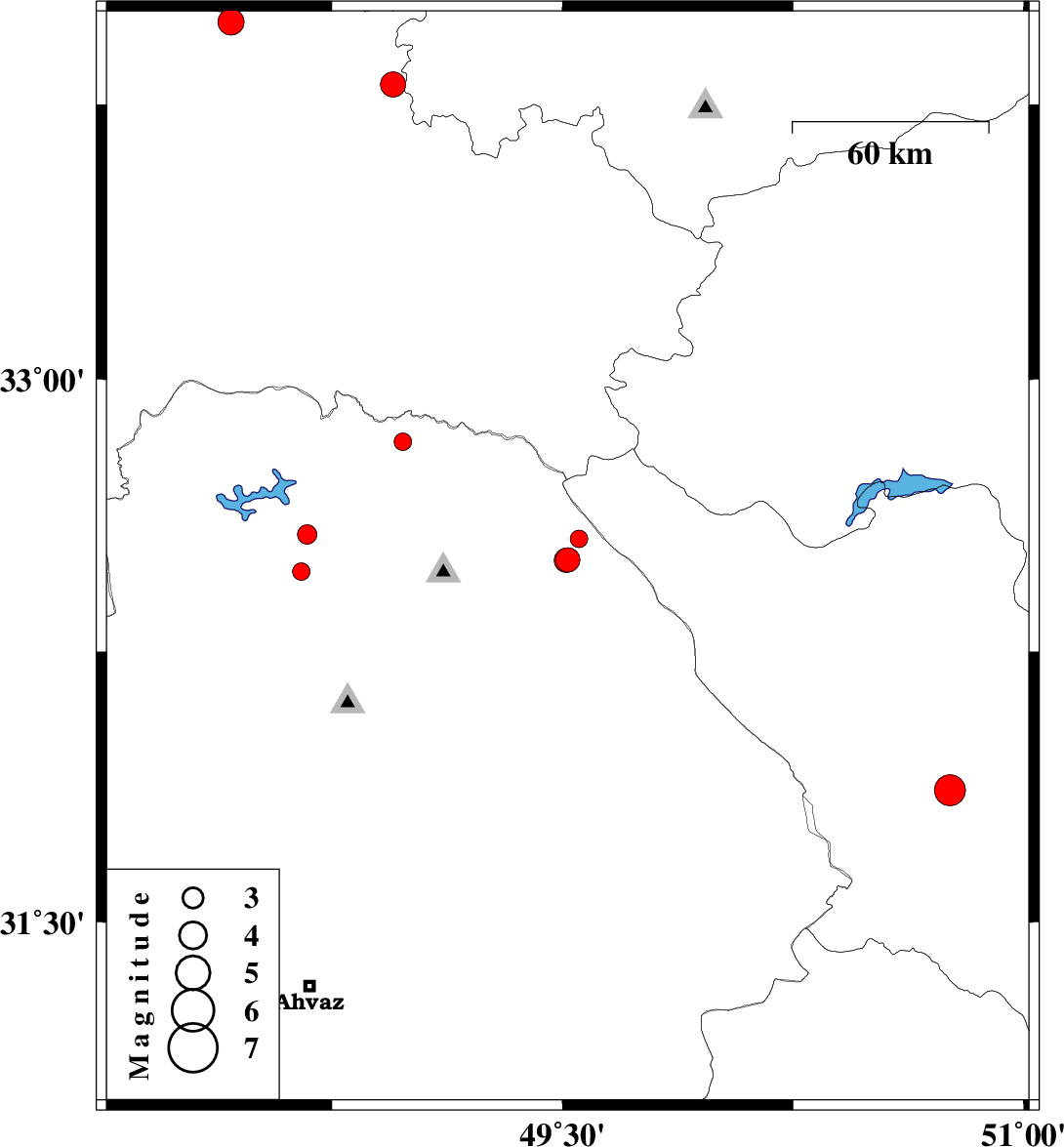 | 2016/03/22 | 02:29:36.4 | 06:59:36.4 | 32.828 | 48.98 | 10 | ML2.6 | Khoozestan Province, 50 km North-West of Lali |