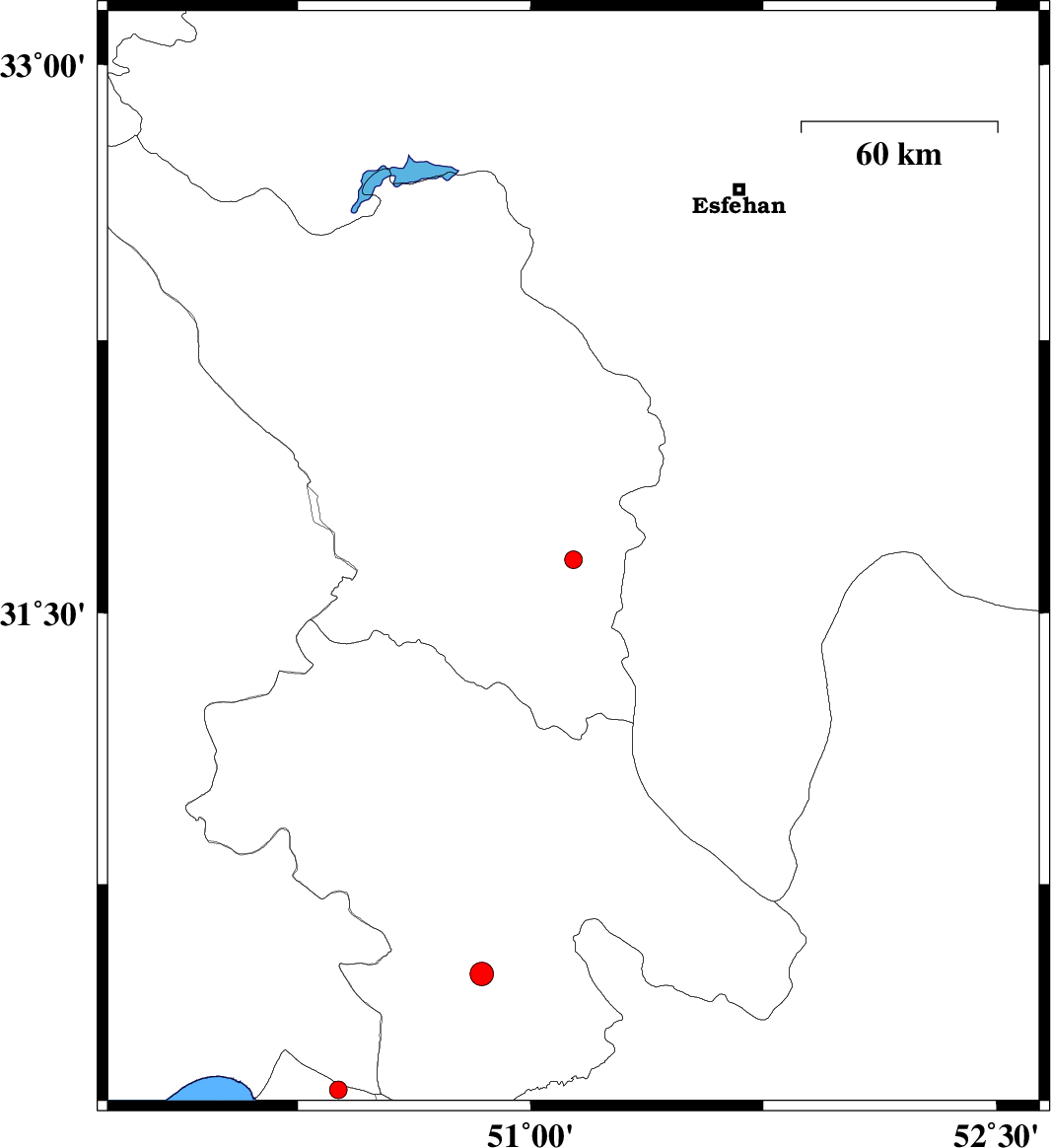 | 2016/04/18 | 23:54:50.5 | 04:24:50.5 | 31.647 | 51.138 | 15 | ML2.6 | Chaharmahal Bakhtiari Province, 38 km South-West of Borujen | ||
