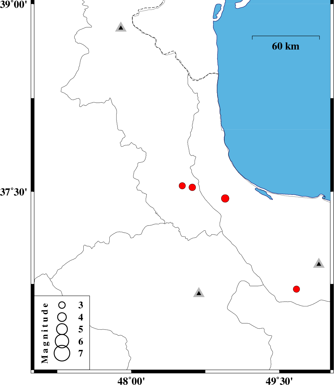 | 2016/04/19 | 15:30:02.6 | 20:00:02.6 | 37.547 | 48.516 | 15 | ML3 | Ardebil Province, 9 km of Khalkhal | ||