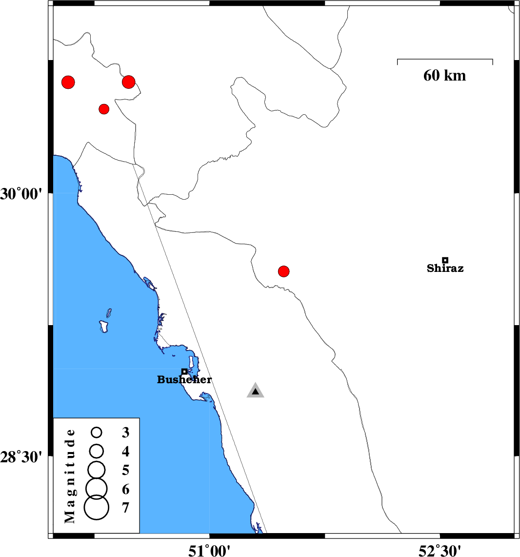 | 2016/03/17 | 14:25:57.5 | 17:55:57.5 | 29.555 | 51.482 | 9 | ML3.2 | Fars Province, 18 km -West of Kazerun | ||