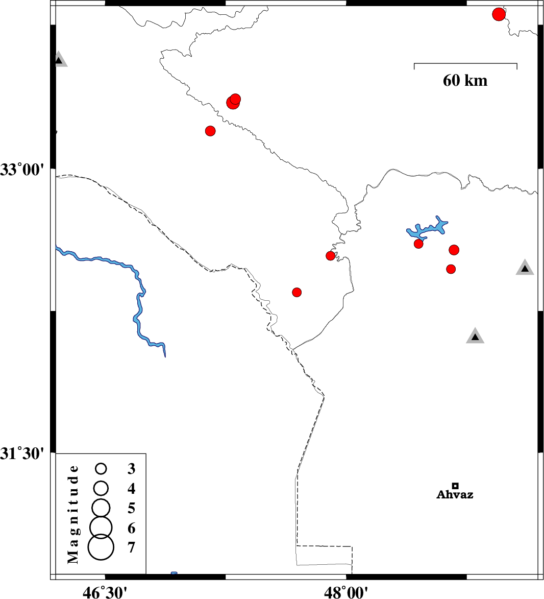 | 2016/04/21 | 04:20:48.6 | 08:50:48.6 | 32.604 | 48.45 | 14 | ML2.6 | Khoozestan Province, 18 km North of Andimeshk | ||