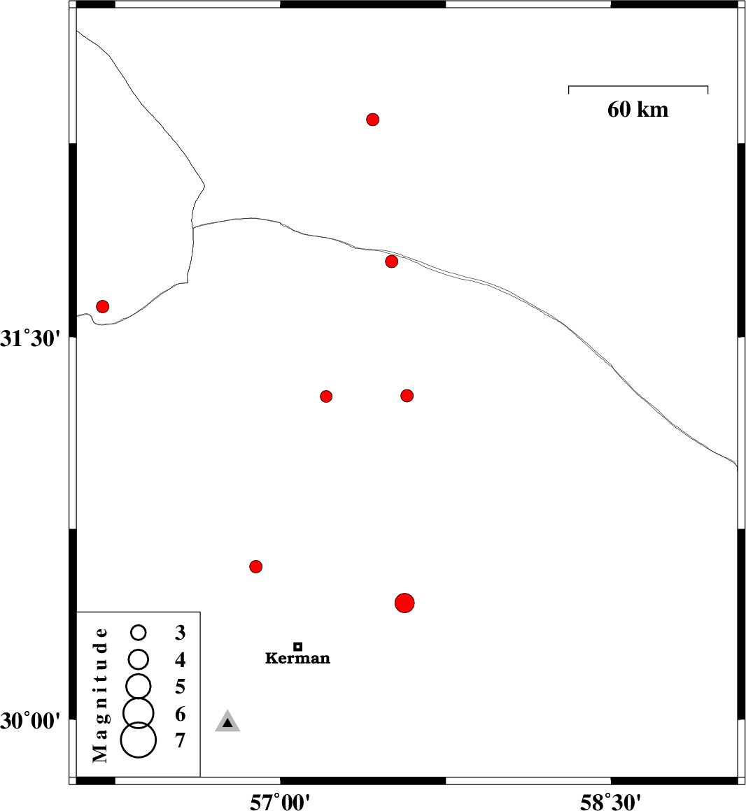 | 2016/04/05 | 04:08:00.2 | 08:38:00.2 | 30.459 | 57.563 | 14 | ML3.9 | Kerman Province, 50 km North-East of Kerman | ||