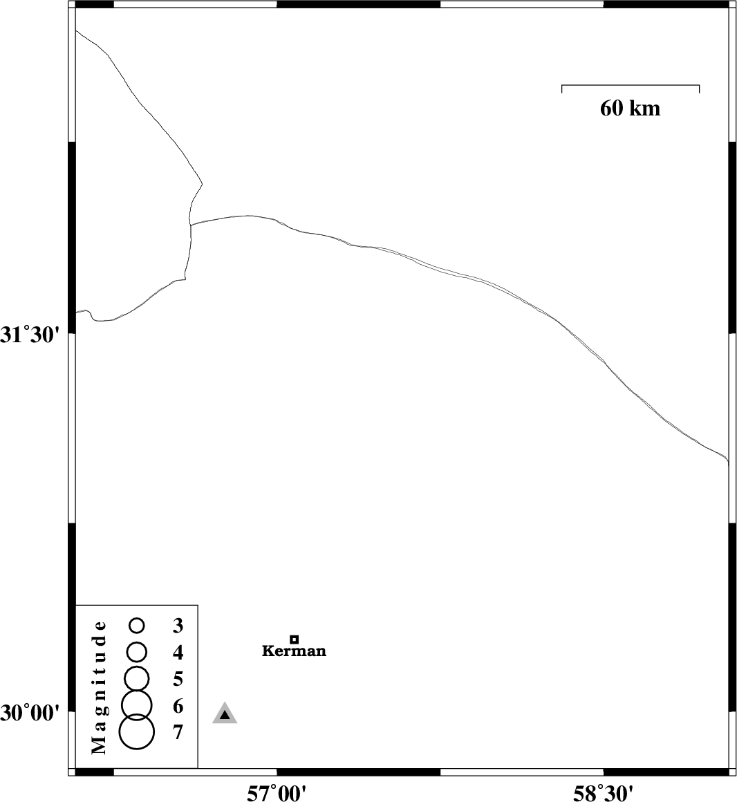| 2016/04/25 | 16:47:37.9 | 21:17:37.9 | 31.272 | 57.574 | 14 | ML2.6 | Kerman Province, 72 km -East of Ravar |