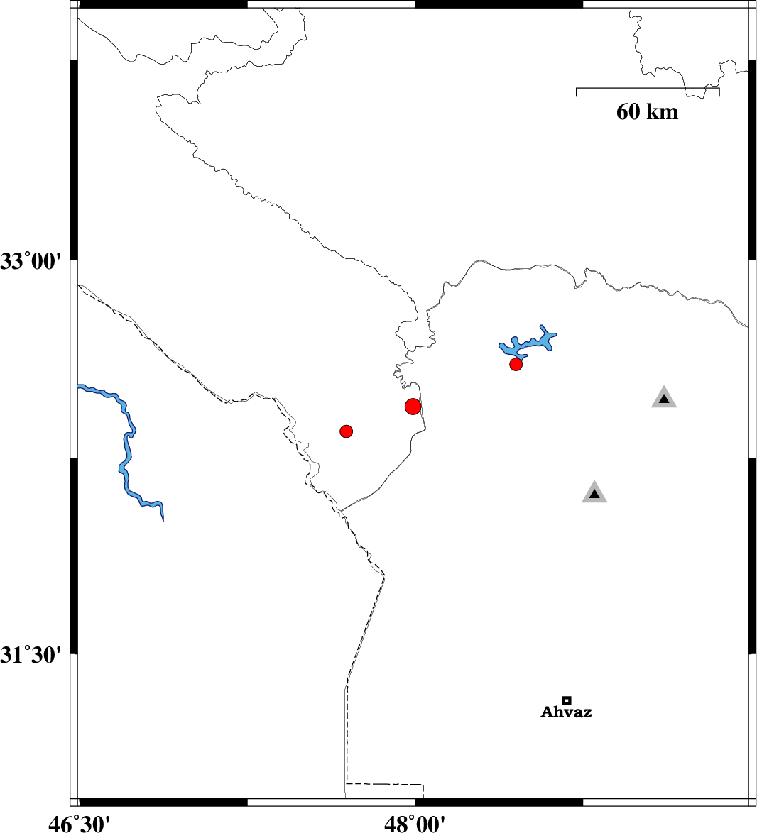 | 2016/04/21 | 04:20:48.6 | 08:50:48.6 | 32.604 | 48.45 | 14 | ML2.6 | Khoozestan Province, 18 km North of Andimeshk |