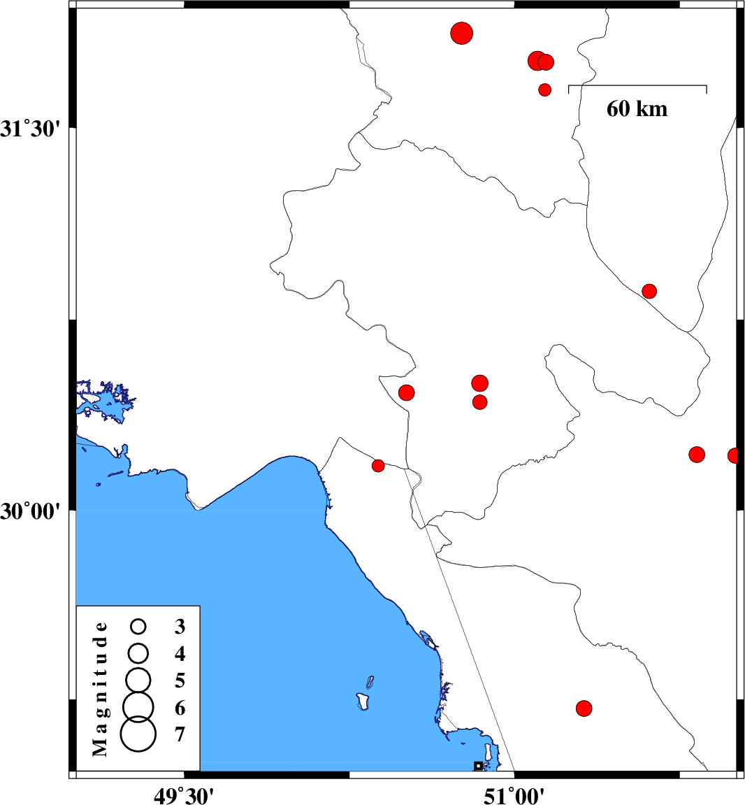 | 2016/04/09 | 08:13:09.5 | 12:43:09.5 | 30.862 | 51.613 | 14 | ML2.9 | Esfahan Province, 15 km -East of Sisakht | ||