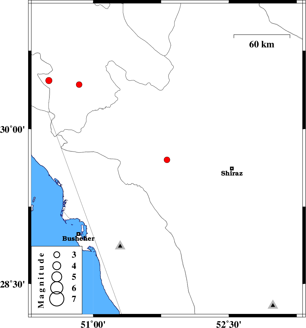 | 2016/05/01 | 23:48:01.6 | 04:18:01.6 | 29.703 | 51.815 | 12 | ML3 | Fars Province, 18 km -East of Kazerun | ||