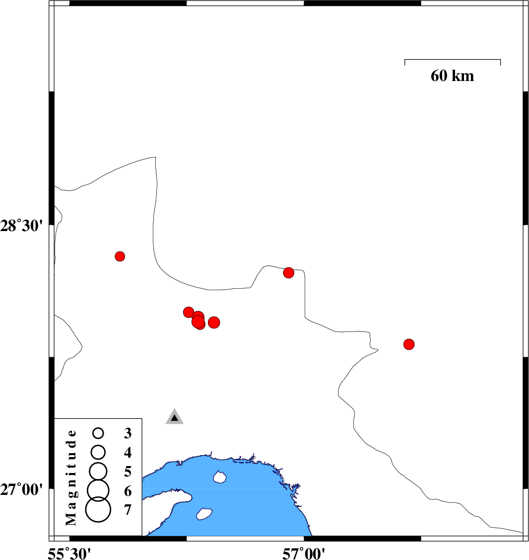 | 2016/05/02 | 20:03:55.3 | 00:33:55.3 | 27.936 | 56.335 | 14 | ML2.9 | Hormozgan Province, 84 km North of Bandar-e abbas | ||