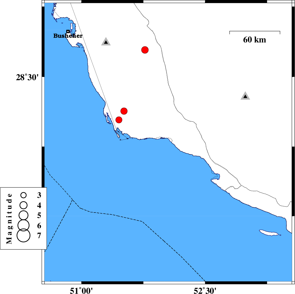 | 2016/05/10 | 00:05:42.8 | 04:35:42.8 | 27.789 | 52.052 | 15 | ML3.7 | Persian Gulf, 4 km of Bandar-e kangan | ||