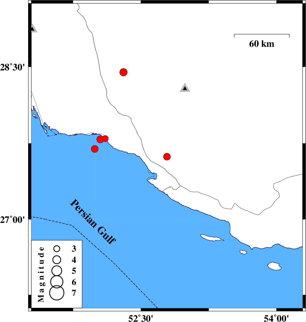 | 2016/05/10 | 00:05:42.8 | 04:35:42.8 | 27.789 | 52.052 | 15 | ML3.7 | Persian Gulf, 4 km of Bandar-e kangan | ||