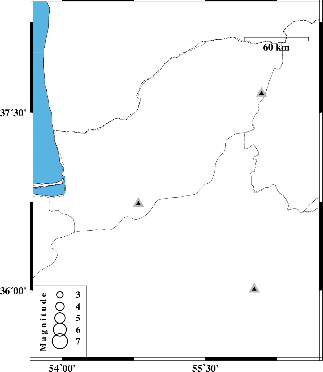 | 2016/05/22 | 23:02:56.3 | 03:32:56.3 | 36.926 | 55.195 | 18 | ML2.5 | Golestan Province, 11 km of Ramian |
