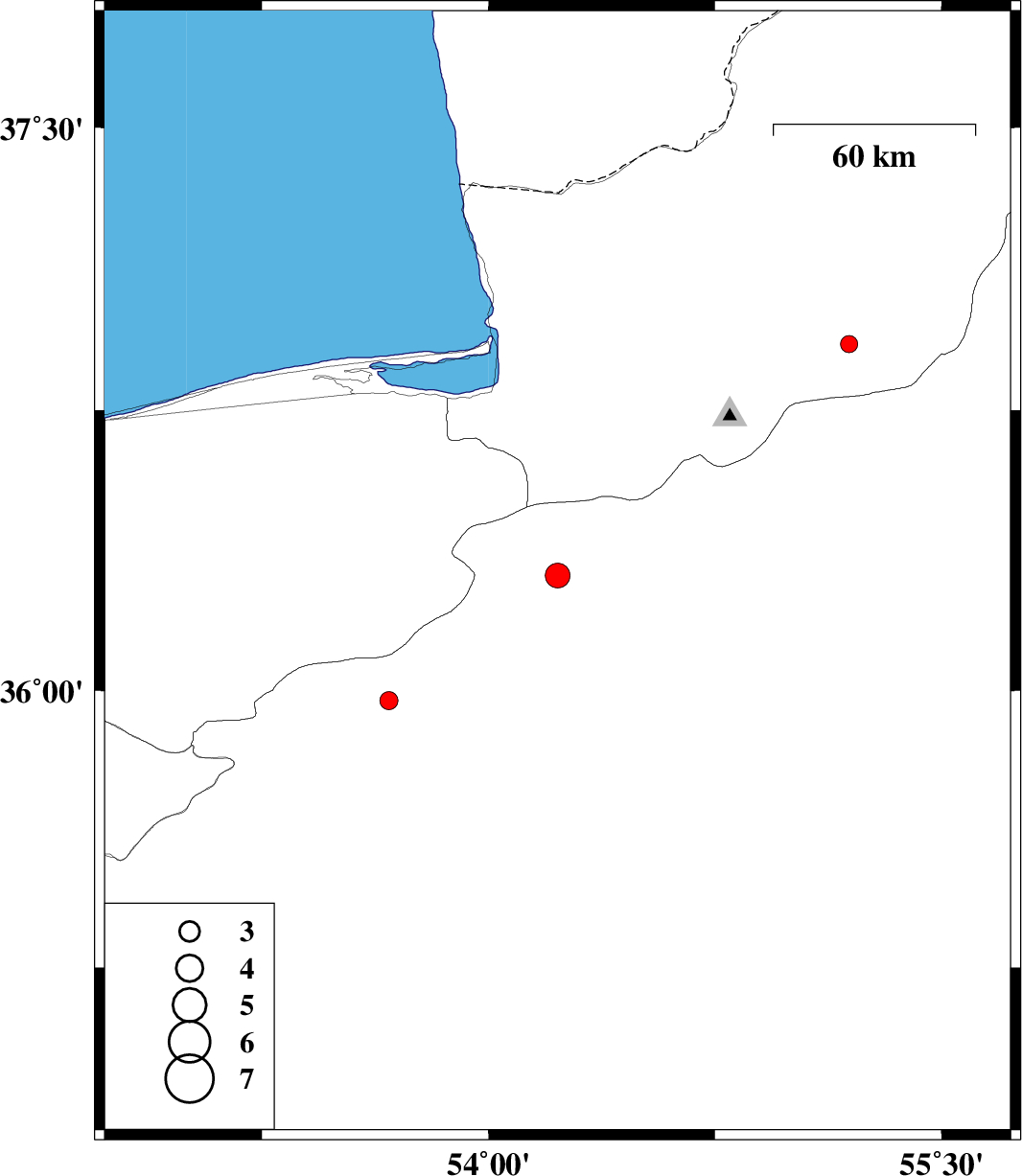| 2016/05/24 | 15:32:57.6 | 20:02:57.6 | 36.309 | 54.229 | 14 | ML3.7 | Semnan Province, 19 km North-West of Damghan | ||