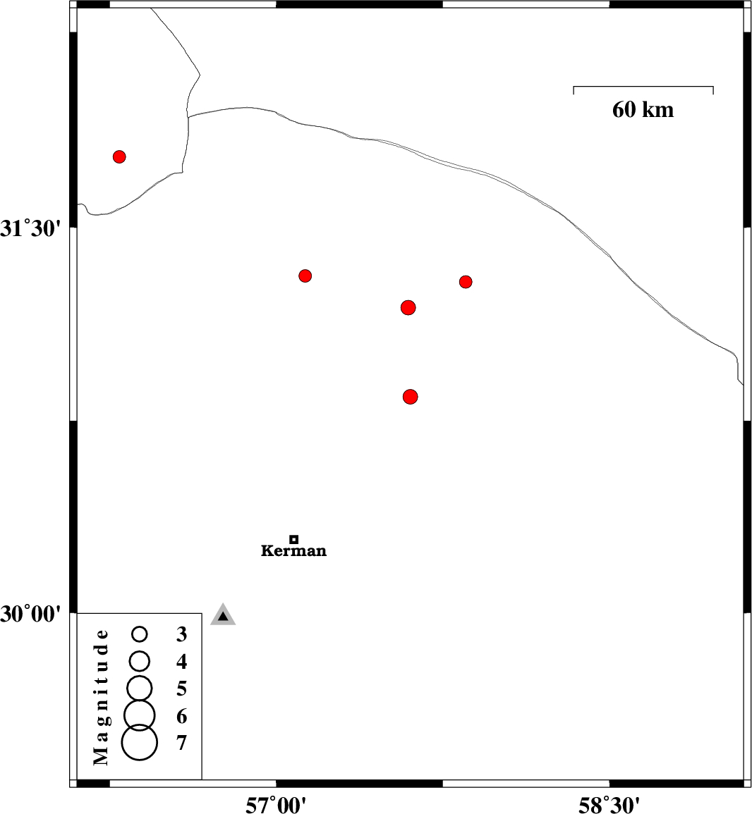| 2016/05/23 | 15:58:23.8 | 20:28:23.8 | 31.289 | 57.853 | 14 | ML2.5 | Kerman Province, 99 km -East of Ravar | ||