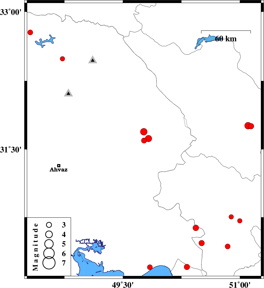 | 2016/05/25 | 06:15:01.5 | 10:45:01.5 | 31.597 | 49.771 | 15 | ML3.1 | Khoozestan Province, 15 km -West of Bagh Malek | ||
