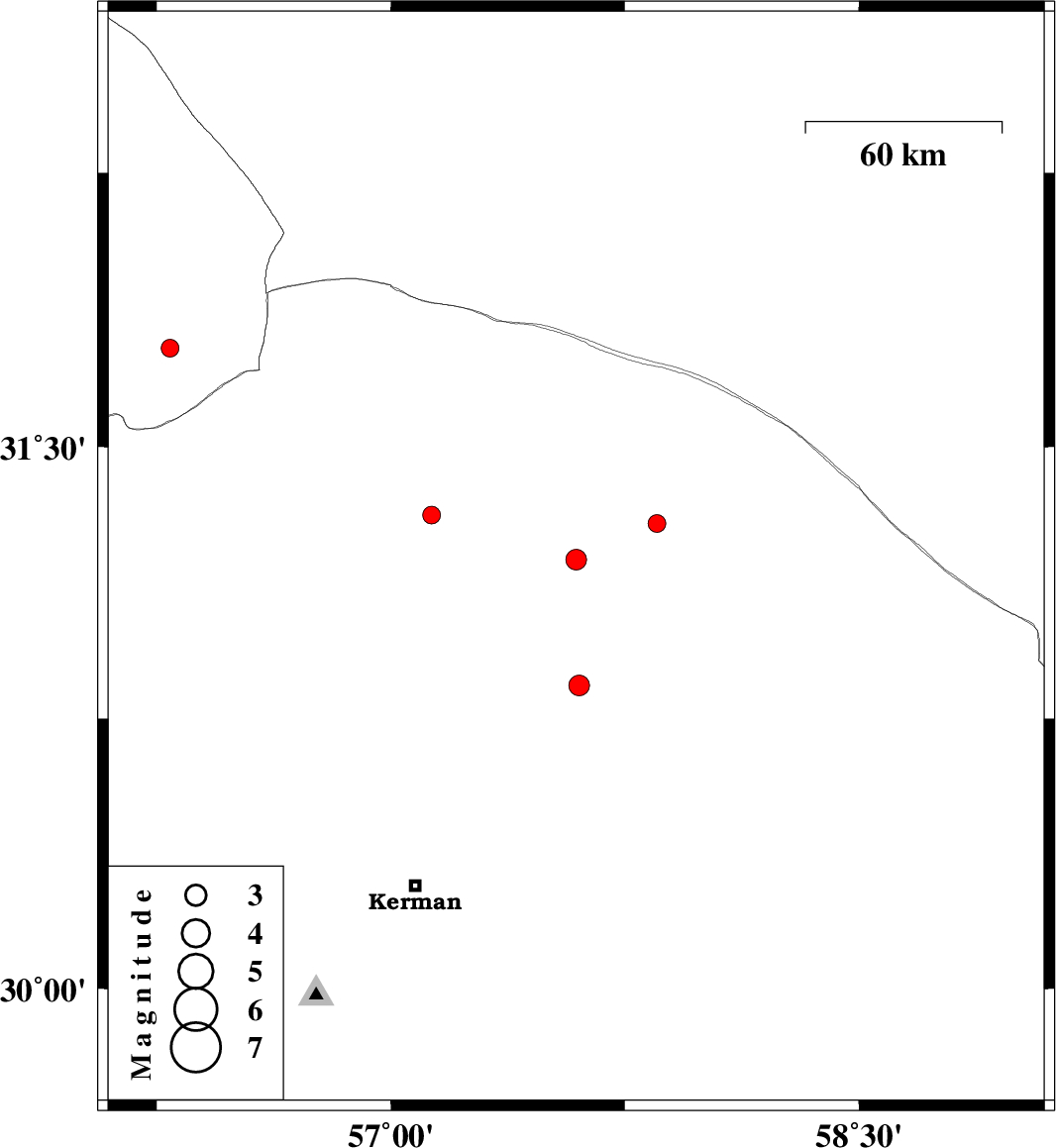 | 2016/05/23 | 15:58:23.8 | 20:28:23.8 | 31.289 | 57.853 | 14 | ML2.5 | Kerman Province, 99 km -East of Ravar | ||
