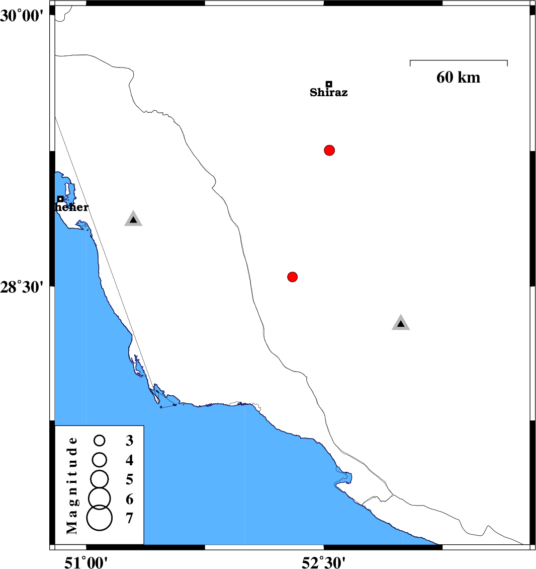 | 2016/05/26 | 19:32:48.8 | 00:02:48.8 | 29.254 | 52.536 | 5 | ML2.9 | Fars Province, 41 km South of Shiraz | ||