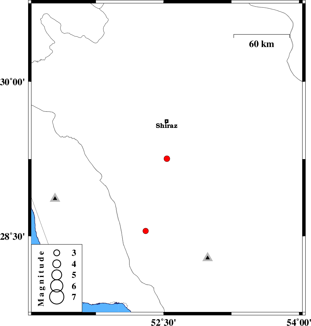 | 2016/05/26 | 19:32:48.8 | 00:02:48.8 | 29.254 | 52.536 | 5 | ML2.9 | Fars Province, 41 km South of Shiraz | ||