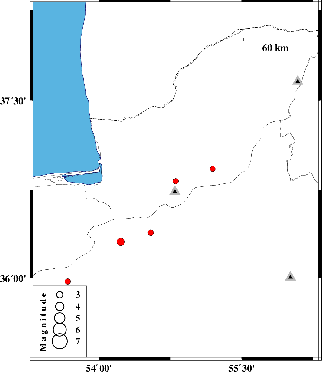 | 2016/05/24 | 15:32:57.6 | 20:02:57.6 | 36.309 | 54.229 | 14 | ML3.7 | Semnan Province, 19 km North-West of Damghan | ||