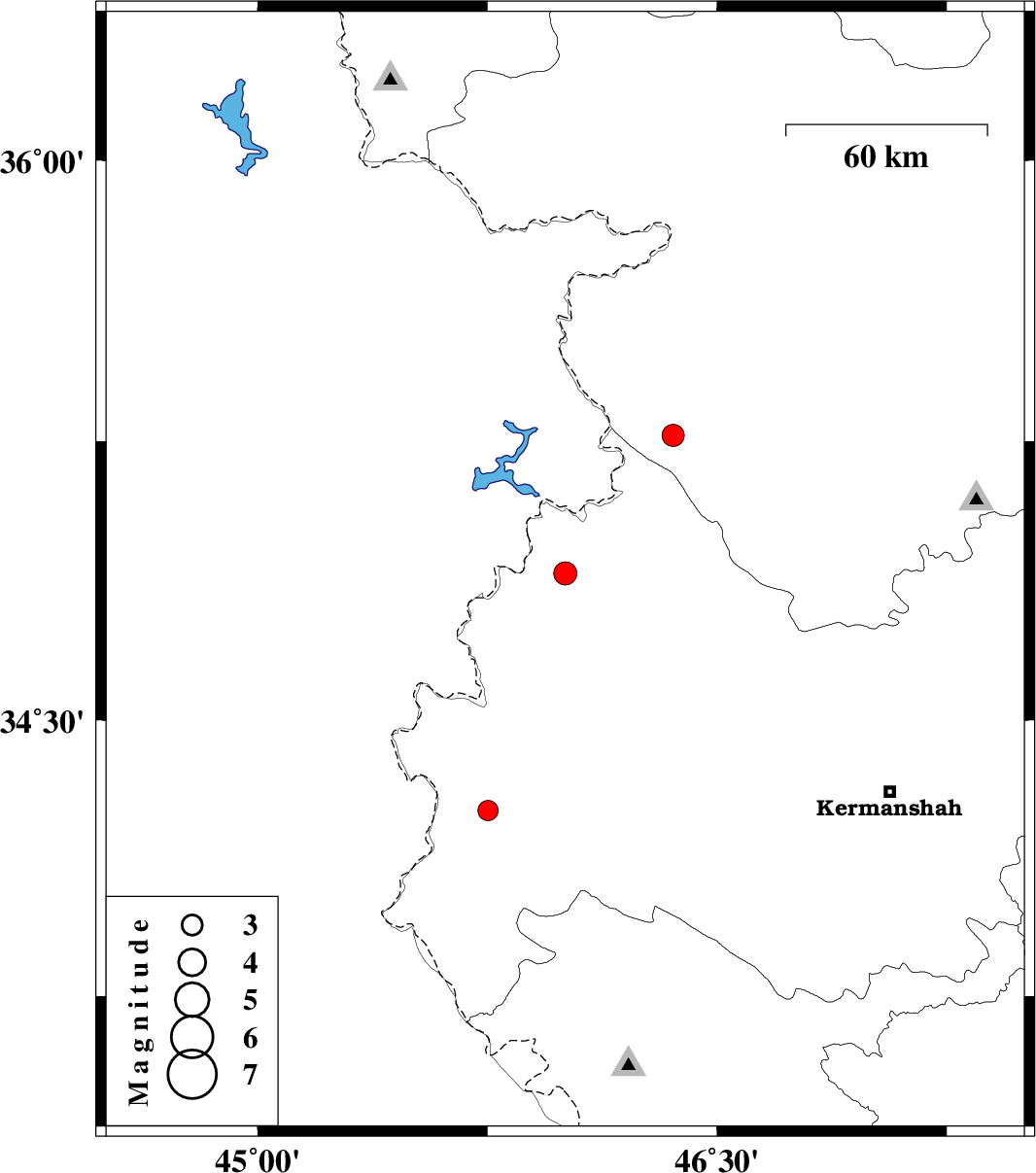 | 2016/06/11 | 10:30:48.2 | 15:00:48.2 | 34.895 | 46.004 | 15 | ML3.4 | Kermanshah Province, 21 km North-East of Tazehabad | ||