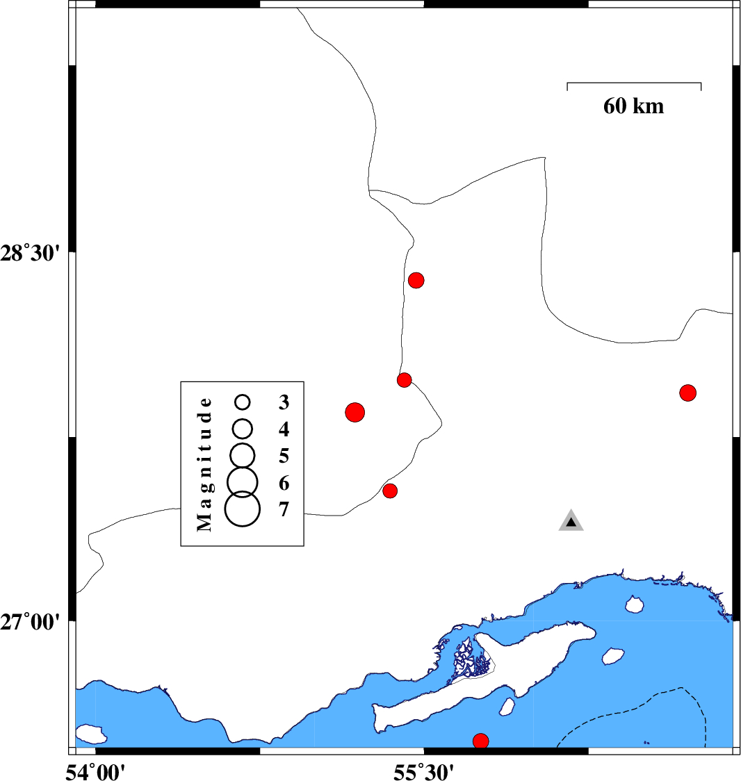 2016/06/07 | 15:25:33.9 | 19:55:33.9 | 27.531 | 55.344 | 15 | ML2.9 | Hormozgan Province, 100 km South-East of Lar | ||