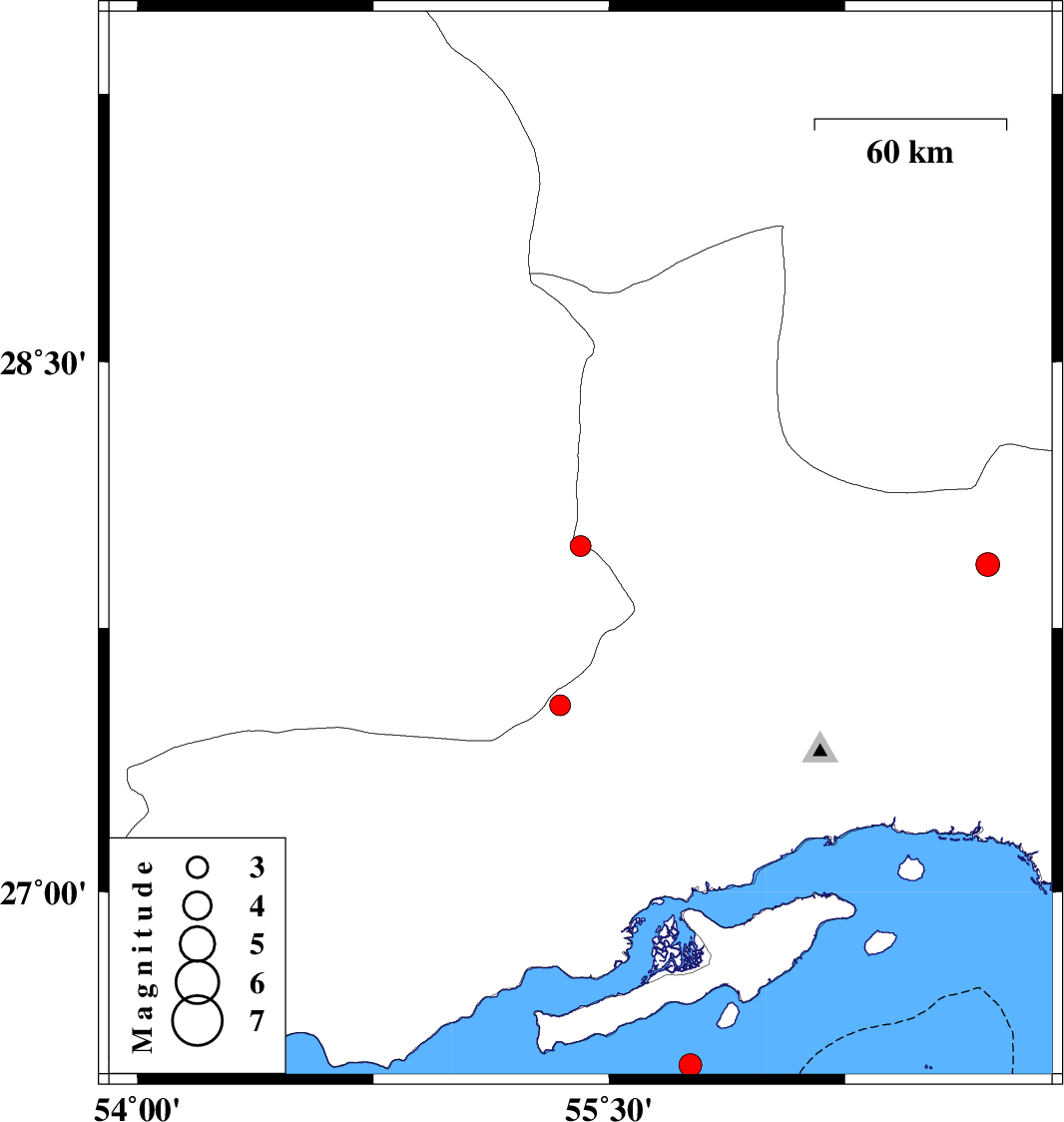 | 2016/06/07 | 15:25:33.9 | 19:55:33.9 | 27.531 | 55.344 | 15 | ML2.9 | Hormozgan Province, 100 km South-East of Lar |