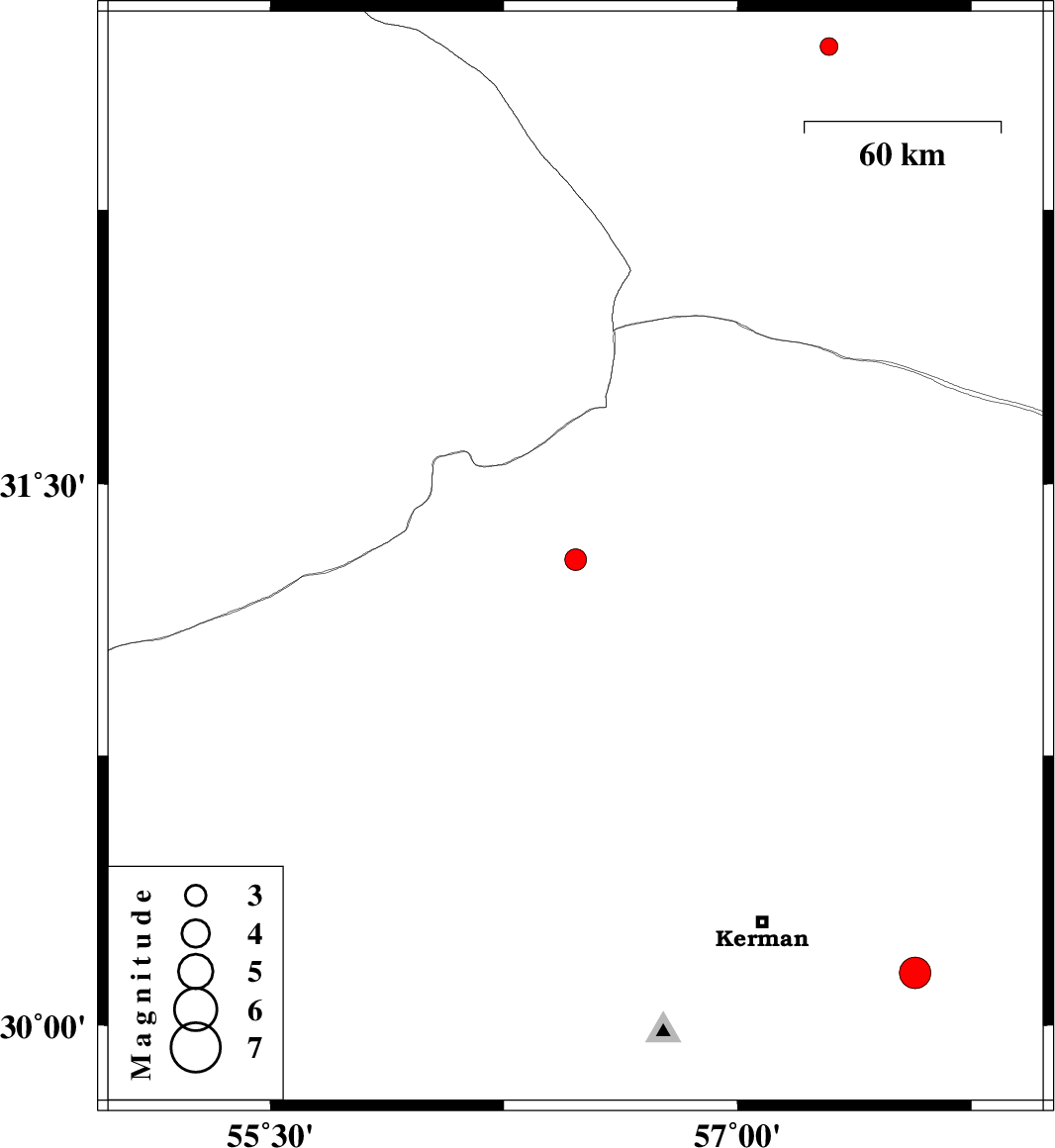 | 2016/06/17 | 10:03:47.8 | 14:33:47.8 | 30.146 | 57.569 | 14 | ML4.5 | Kerman Province, 50 km South-East of Kerman |