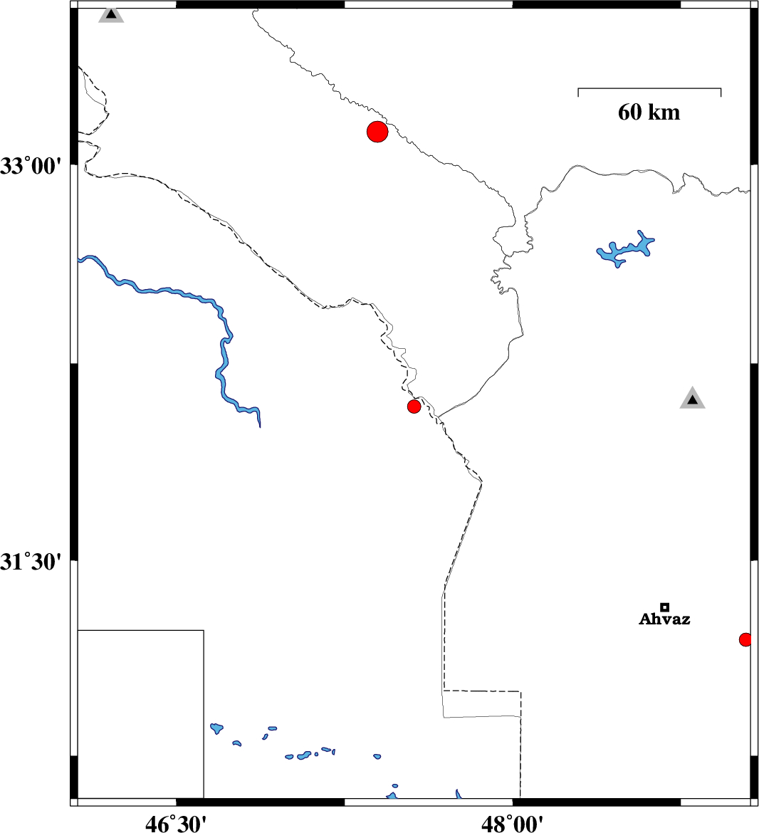 | 2016/06/22 | 23:14:25.3 | 03:44:25.3 | 33.124 | 47.396 | 15 | ML4.3 | Ilam Province, 8 km of Darreh Shahr | ||