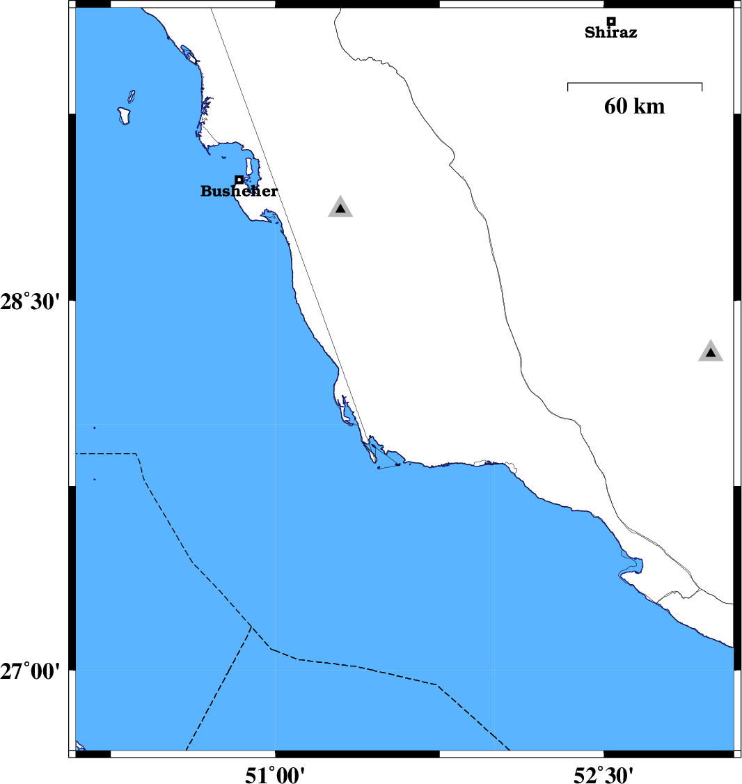 | 2016/06/08 | 06:01:51.8 | 10:31:51.8 | 29.183 | 51.388 | 4 | ML3.4 | Bushehr Province, 20 km -East of Borazjan | ||