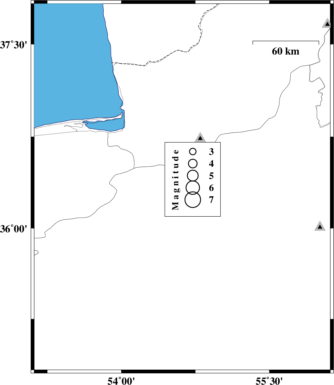 | 2016/07/01 | 01:07:54.5 | 05:37:54.5 | 36.327 | 54.617 | 15 | ML2.7 | Semnan Province, 30 km North-East of Damghan |
