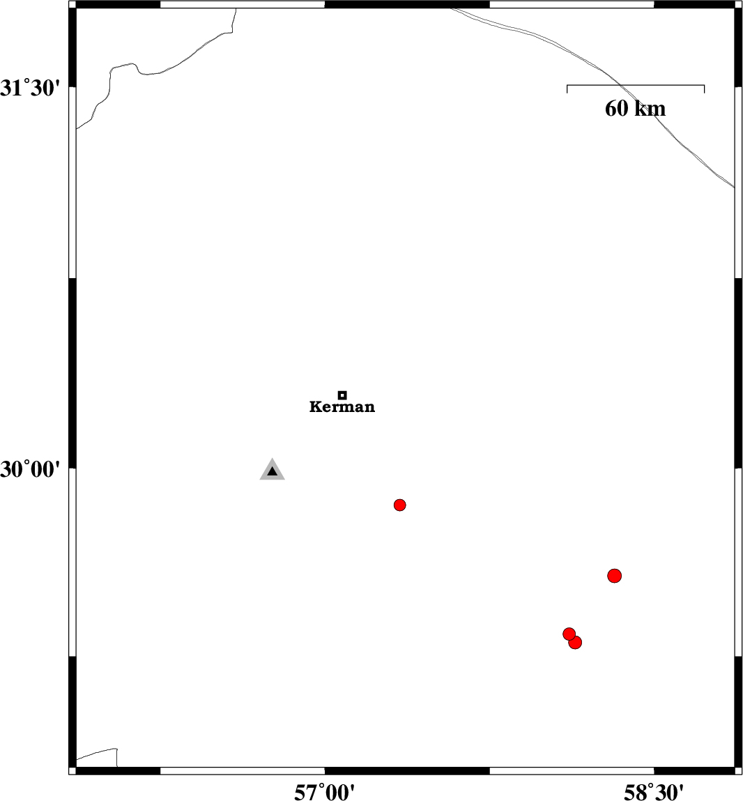 | 2016/06/30 | 00:41:39.2 | 05:11:39.2 | 30.307 | 57.366 | 14 | ML2.6 | Kerman Province, 28 km -East of Kerman | ||