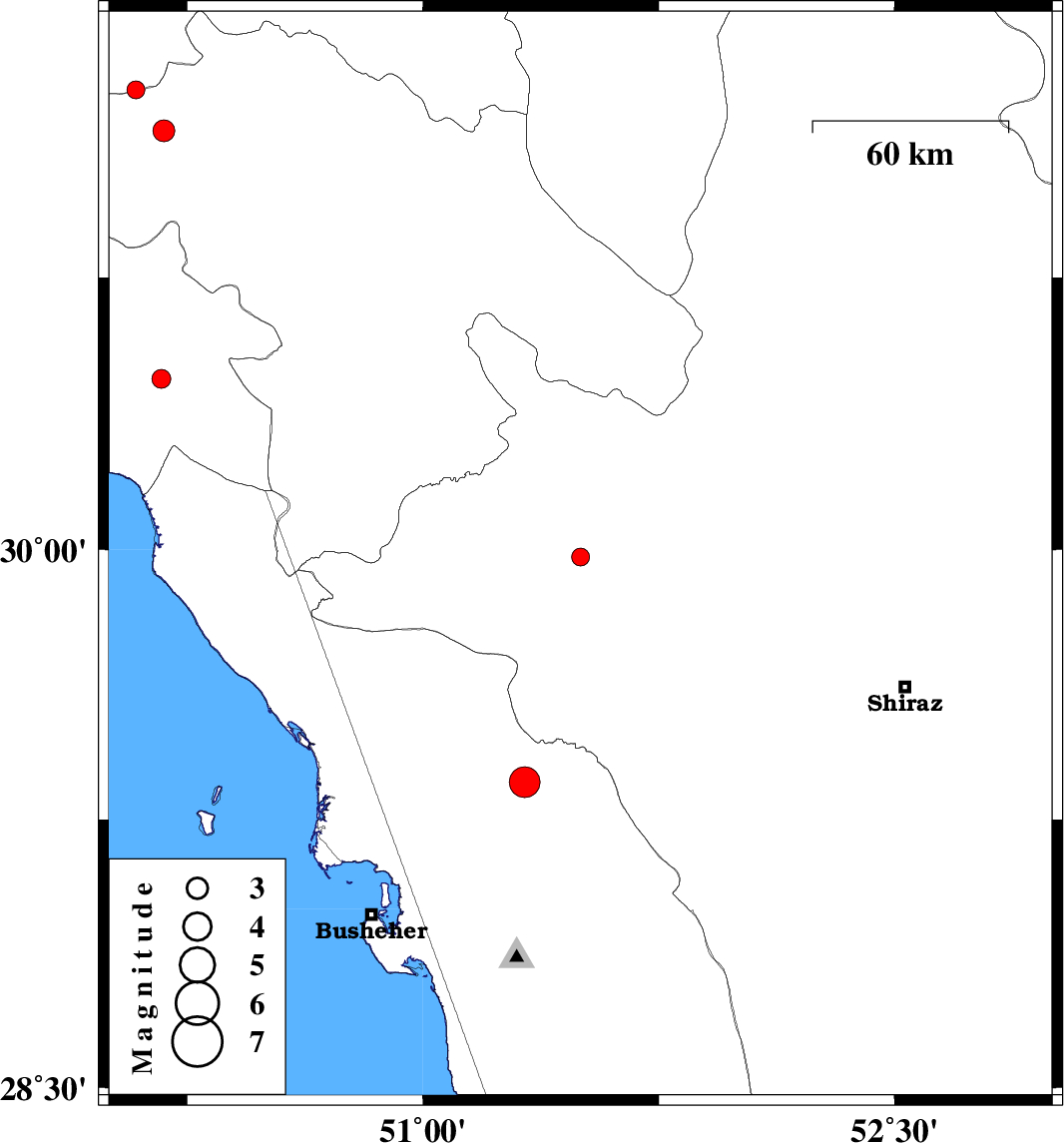 | 2016/07/08 | 10:53:19.2 | 15:23:19.2 | 29.98 | 51.501 | 6 | ML2.6 | Fars Province, 15 km South of Nurabad | ||
