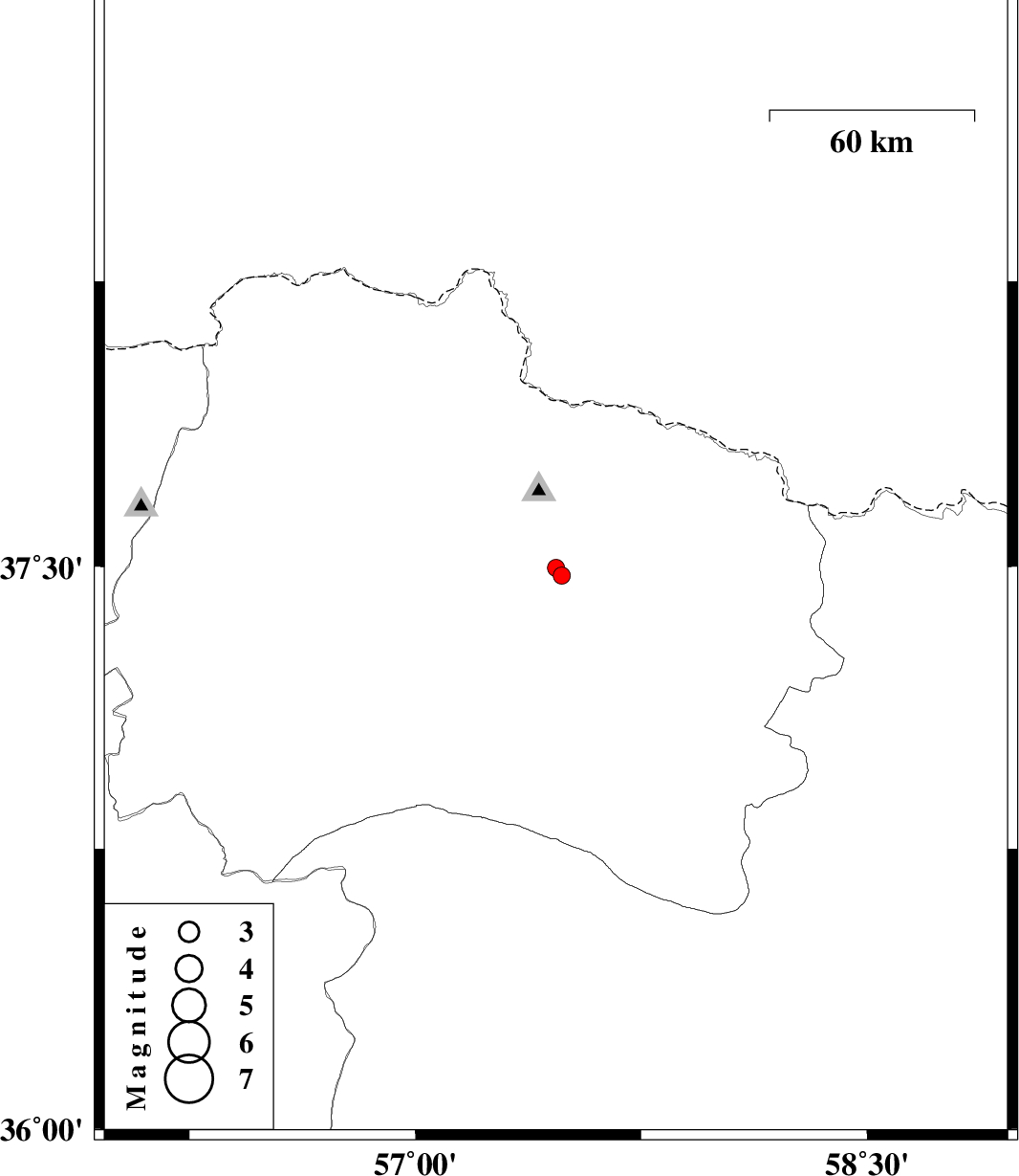 | 2016/07/10 | 15:18:03.8 | 19:48:03.8 | 37.497 | 57.467 | 14 | ML2.5 | Khorasan(north) Province, 12 km -East of Bojnurd |