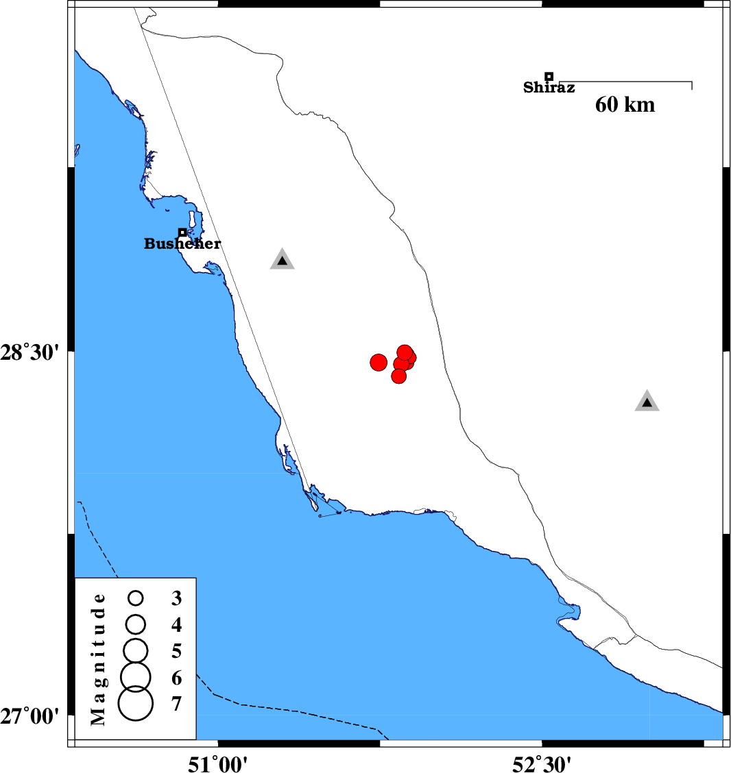 2016/07/06 07:12:59.5 11:42:59.5 28.45451.74421 ML3.5 Bushehr Province, 43 km South-East of Khormog