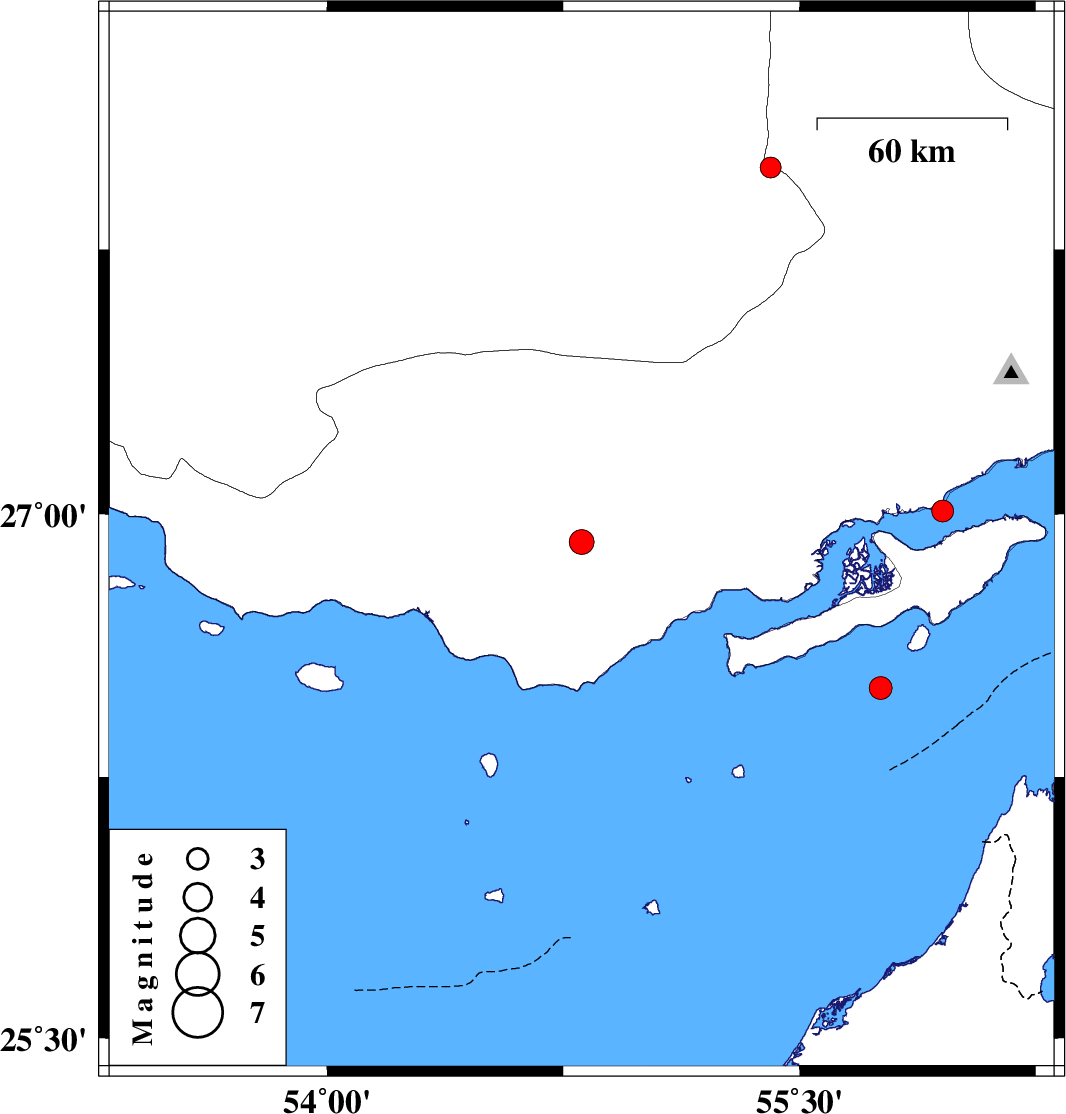 | 2016/07/12 | 22:43:05.3 | 03:13:05.3 | 26.921 | 54.808 | 15 | ML3.5 | Hormozgan Province, 44 km North of Bandar-e lengeh | ||