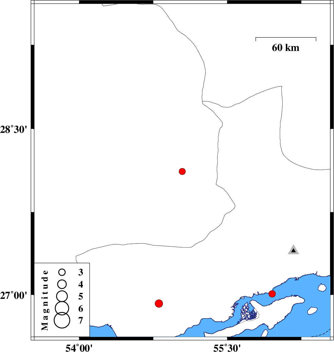 | 2016/07/12 | 22:43:05.3 | 03:13:05.3 | 26.921 | 54.808 | 15 | ML3.5 | Hormozgan Province, 44 km North of Bandar-e lengeh | ||