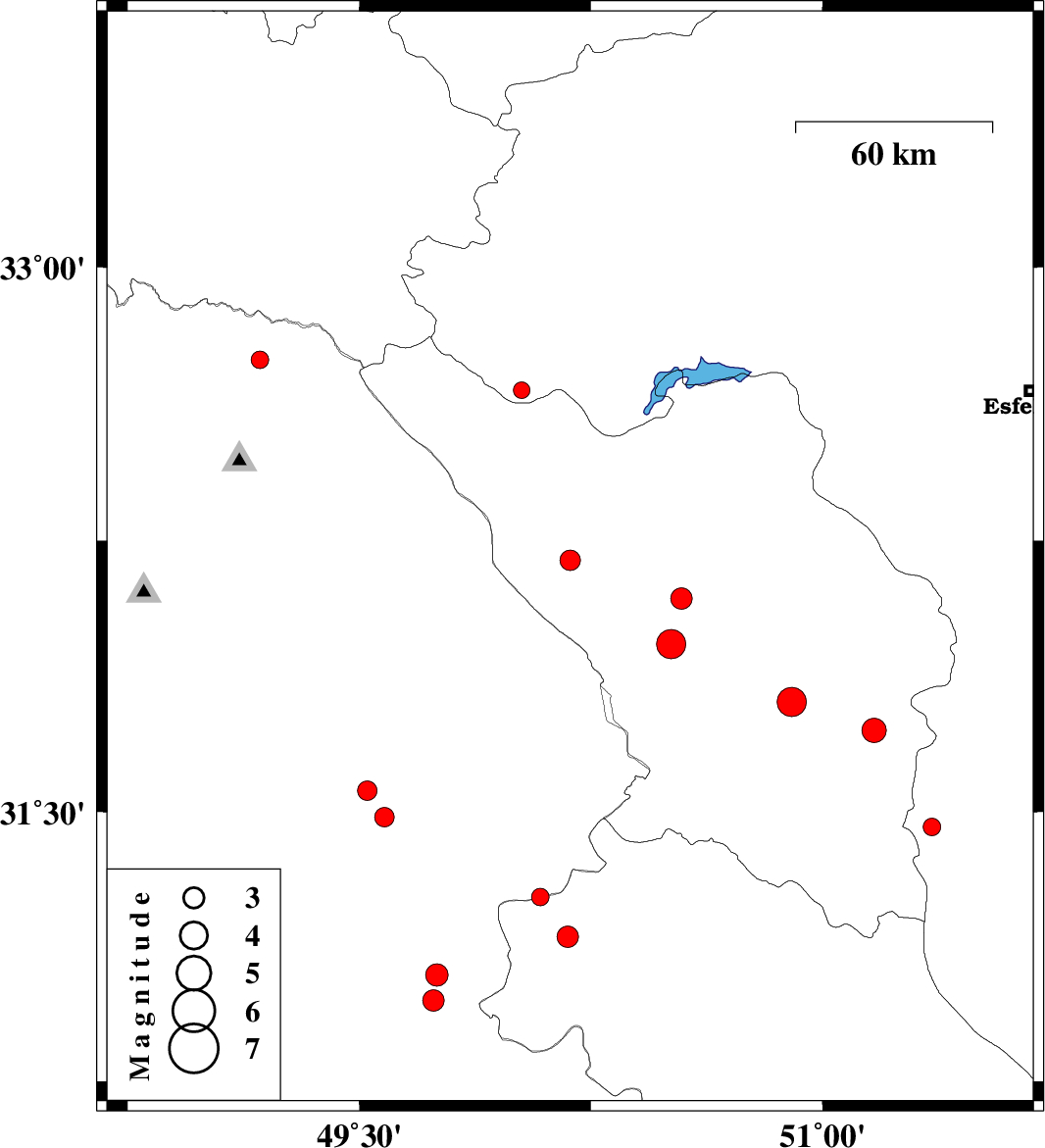 | 2016/07/08 | 15:11:21.1 | 19:41:21.1 | 32.663 | 50.026 | 15 | ML2.4 | Esfahan Province, 24 km North of Chelgard | ||
