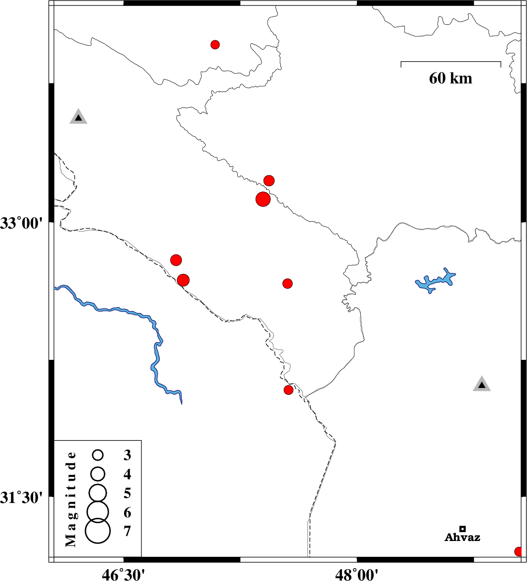 | 2016/06/23 | 00:15:15.9 | 04:45:15.9 | 33.224 | 47.434 | 14 | ML3.1 | Lorestan Province, 16 km -East of Darreh Shahr | ||