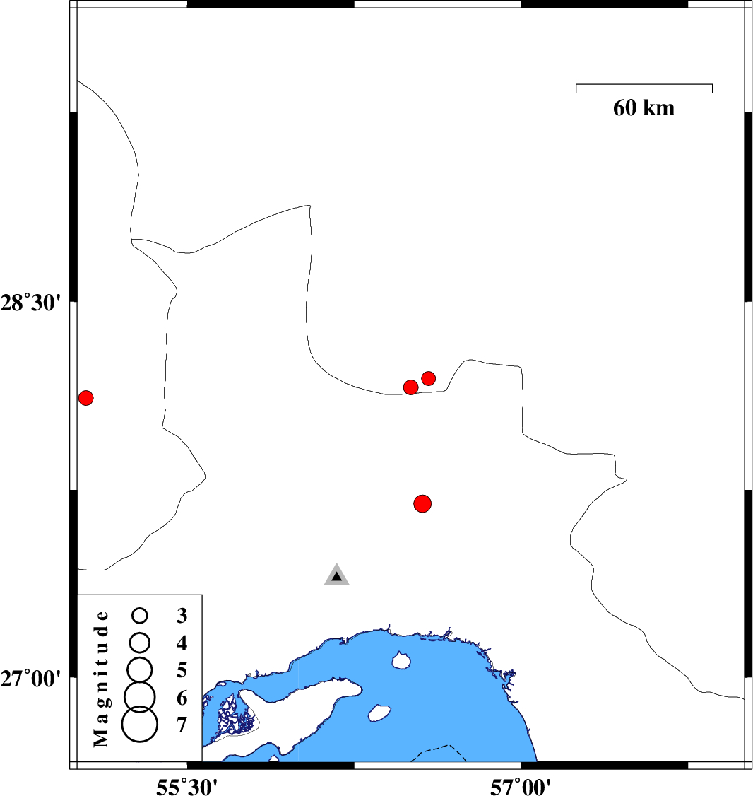 | 2016/07/16 | 02:46:20.5 | 07:16:20.5 | 28.117 | 55.044 | 15 | ML2.9 | Fars Province, 87 km South-West of Hajiabad | ||