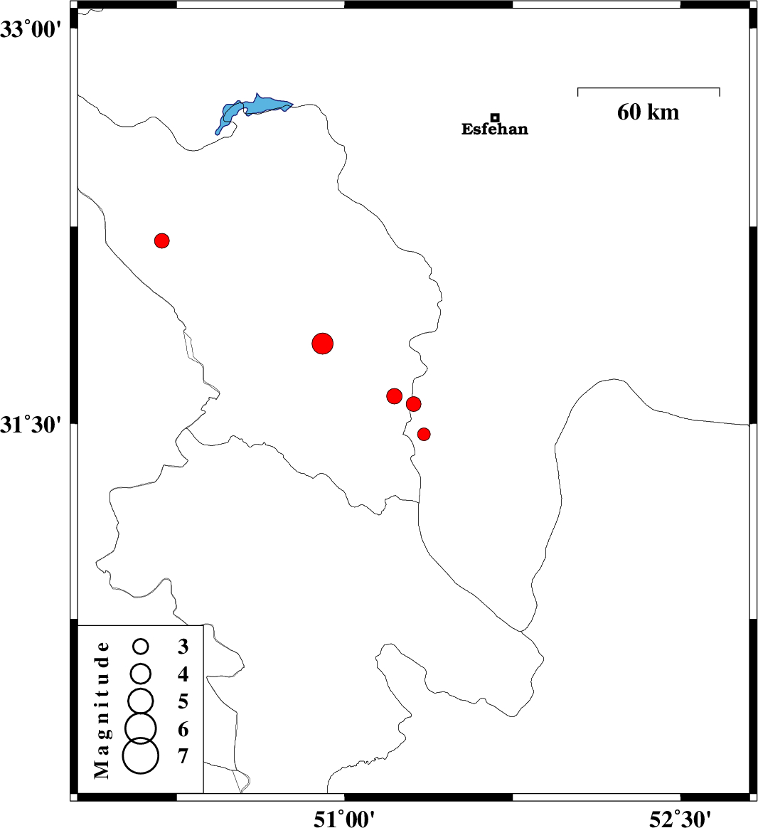 | 2016/07/12 | 01:39:24.7 | 06:09:24.7 | 31.458 | 51.354 | 17 | ML2.6 | Esfahan Province, 21 km -West of Semirom |