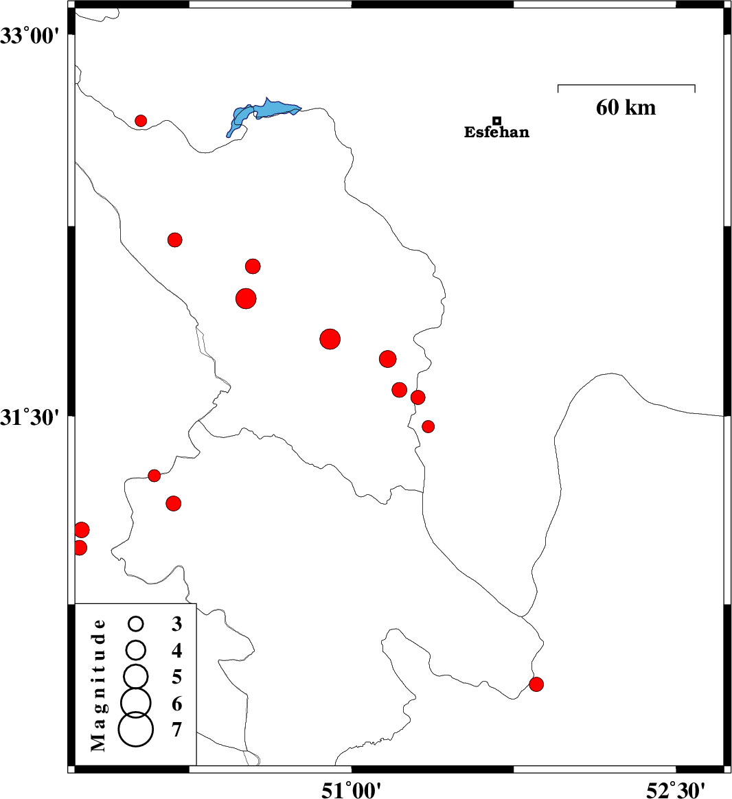 | 2016/06/28 | 15:07:49.3 | 19:37:49.3 | 31.726 | 51.167 | 15 | ML3.5 | Chaharmahal Bakhtiari Province, 29 km South-West of Borujen | ||