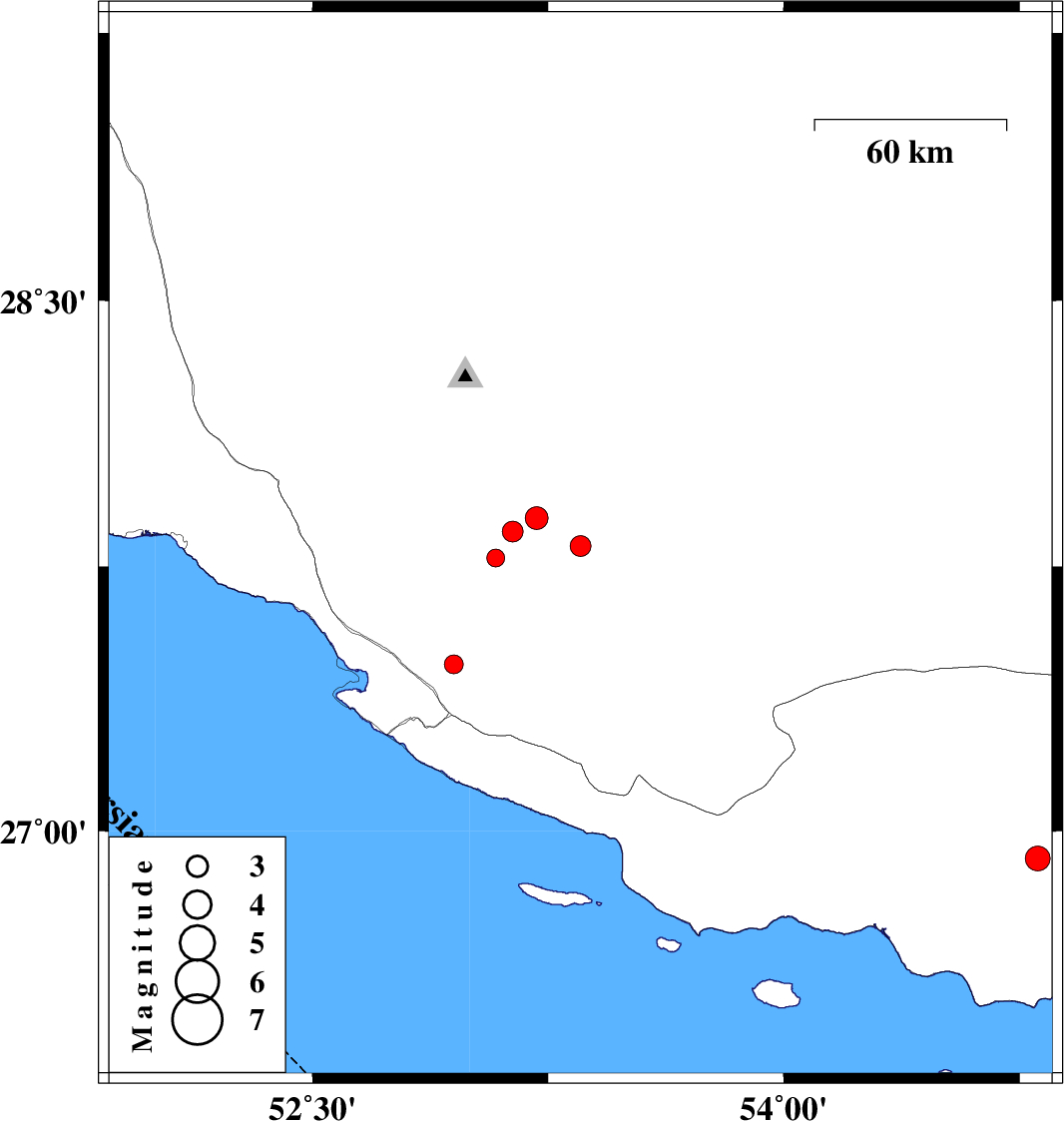 | 2016/07/19 | 02:19:06.3 | 06:49:06.3 | 27.809 | 53.353 | 15 | ML3 | Fars Province, 56 km North-East of Lamerd | ||