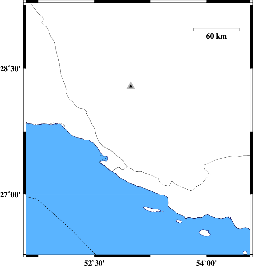 | 2016/07/19 | 02:19:06.3 | 06:49:06.3 | 27.809 | 53.353 | 15 | ML3 | Fars Province, 56 km North-East of Lamerd | ||