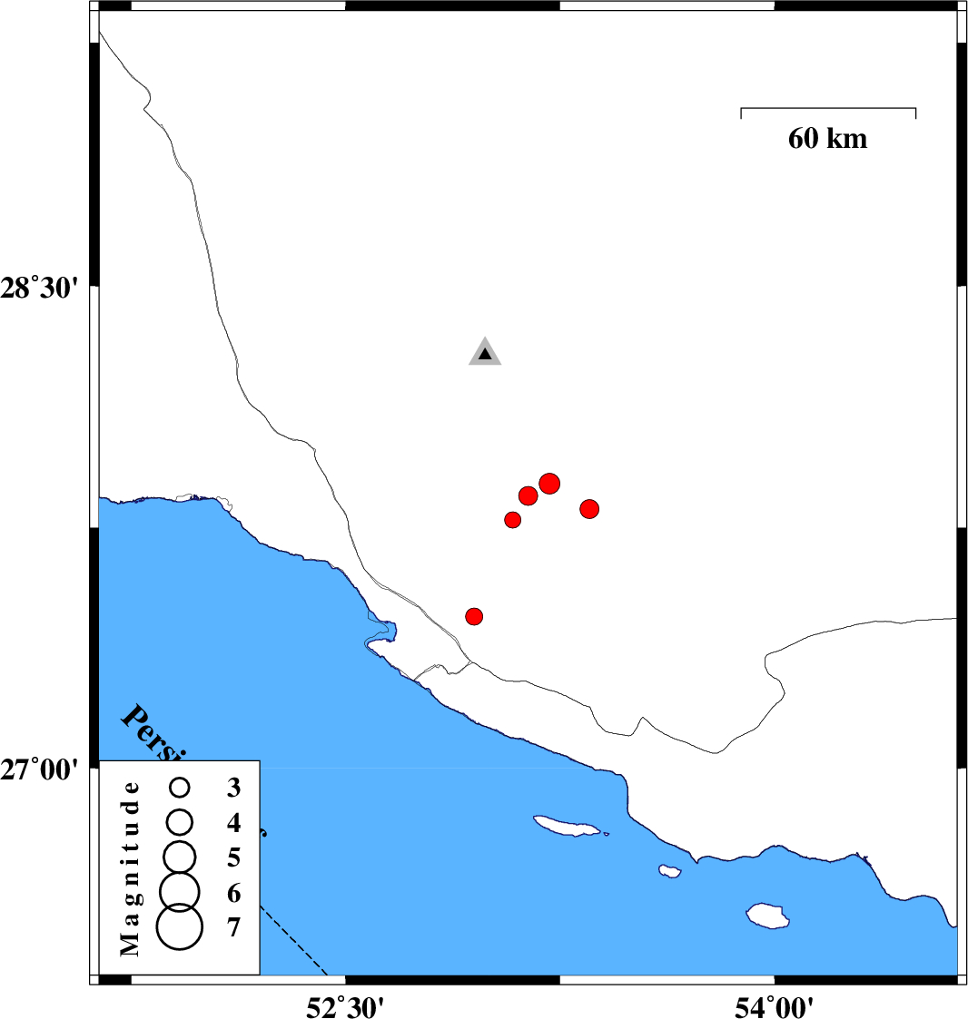 | 2016/07/19 | 07:57:44.8 | 12:27:44.8 | 27.849 | 53.138 | 15 | ML3 | Fars Province, 57 km North of Lamerd | ||