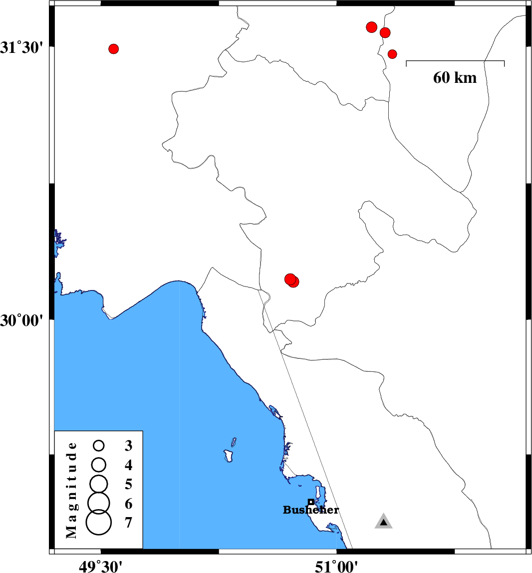 | 2016/07/12 | 13:53:19.3 | 18:23:19.3 | 31.486 | 49.581 | 15 | ML2.8 | Khoozestan Province, 23 km North of Ramhormoz | ||