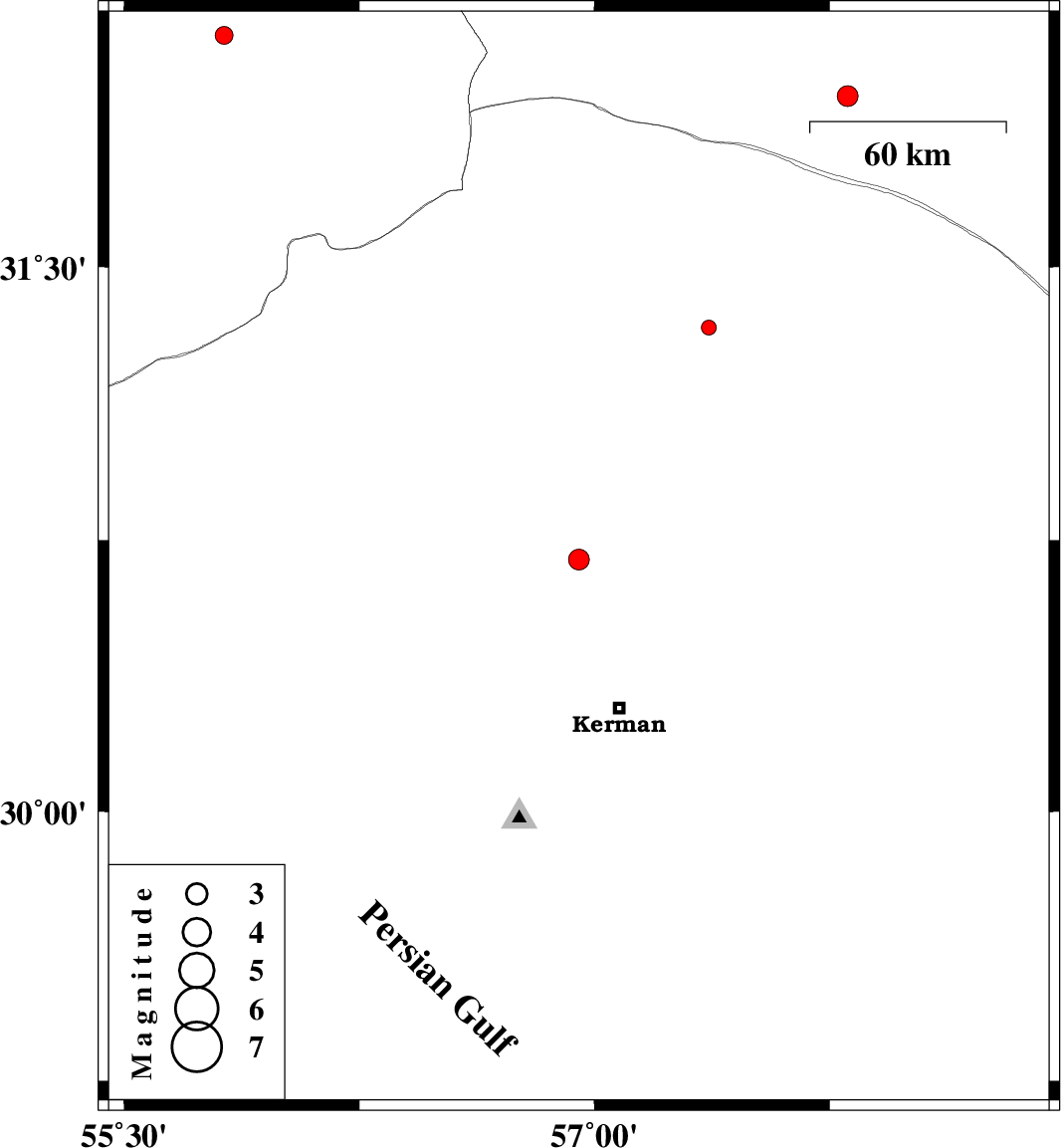 2016/07/19 | 14:46:20.1 | 19:16:20.1 | 31.334 | 57.365 | 14 | ML2.1 | Kerman Province, 53 km -East of Ravar | ||