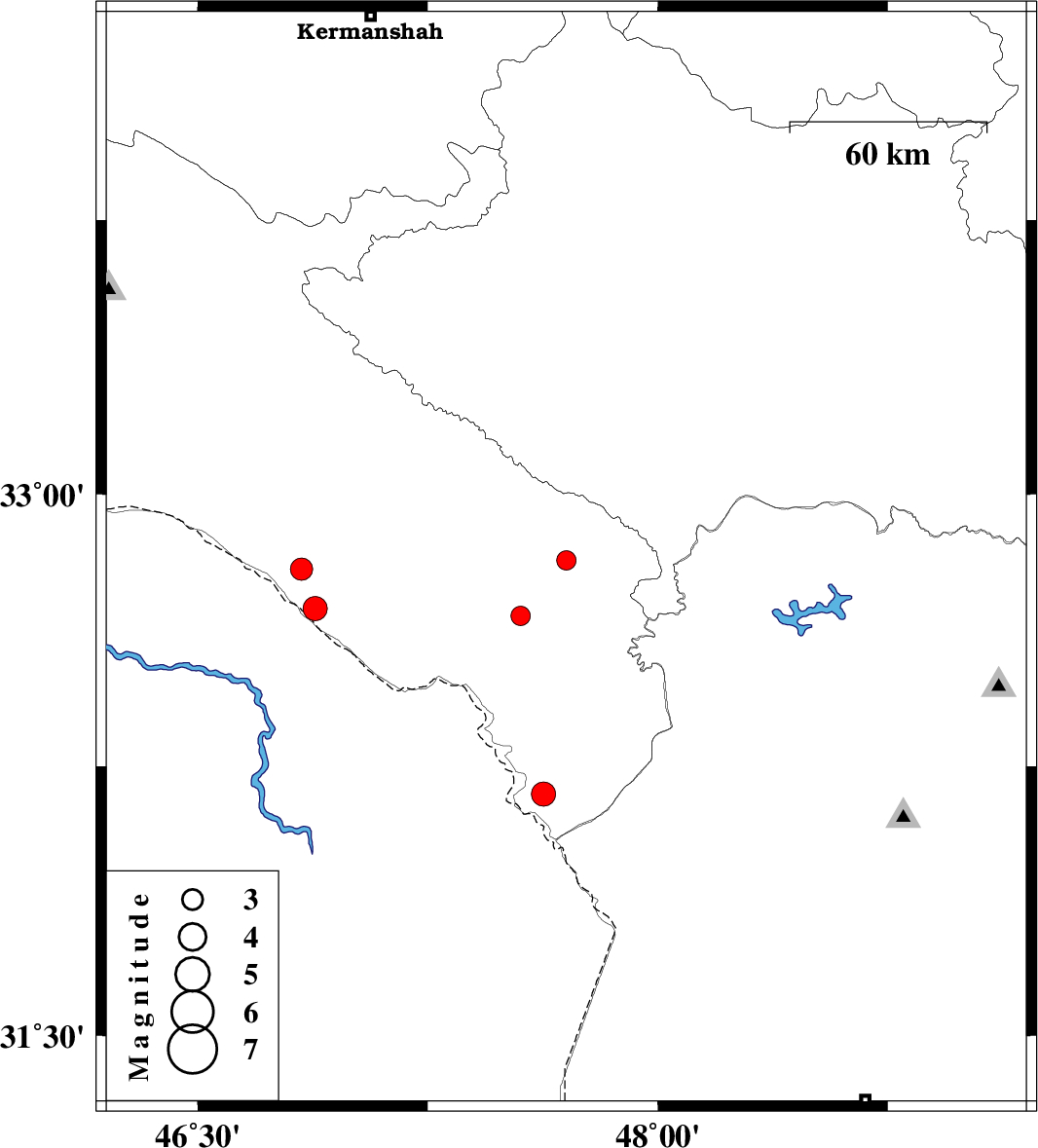 | 2016/07/15 | 17:27:54.5 | 21:57:54.5 | 32.794 | 46.838 | 14 | ML3.3 | Ilam Province, 41 km North-West of Dehloran | ||