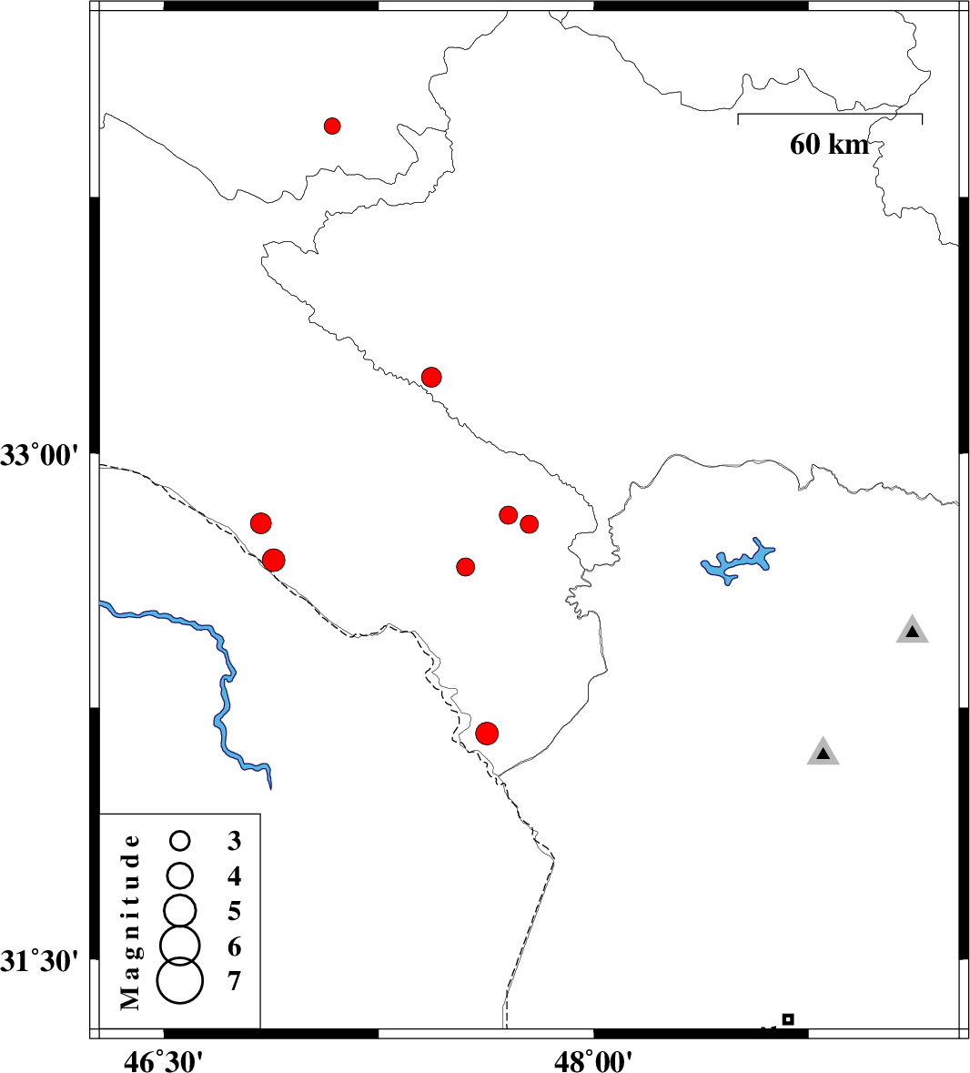 | 2016/06/23 | 00:15:15.9 | 04:45:15.9 | 33.224 | 47.434 | 14 | ML3.1 | Lorestan Province, 16 km -East of Darreh Shahr |
