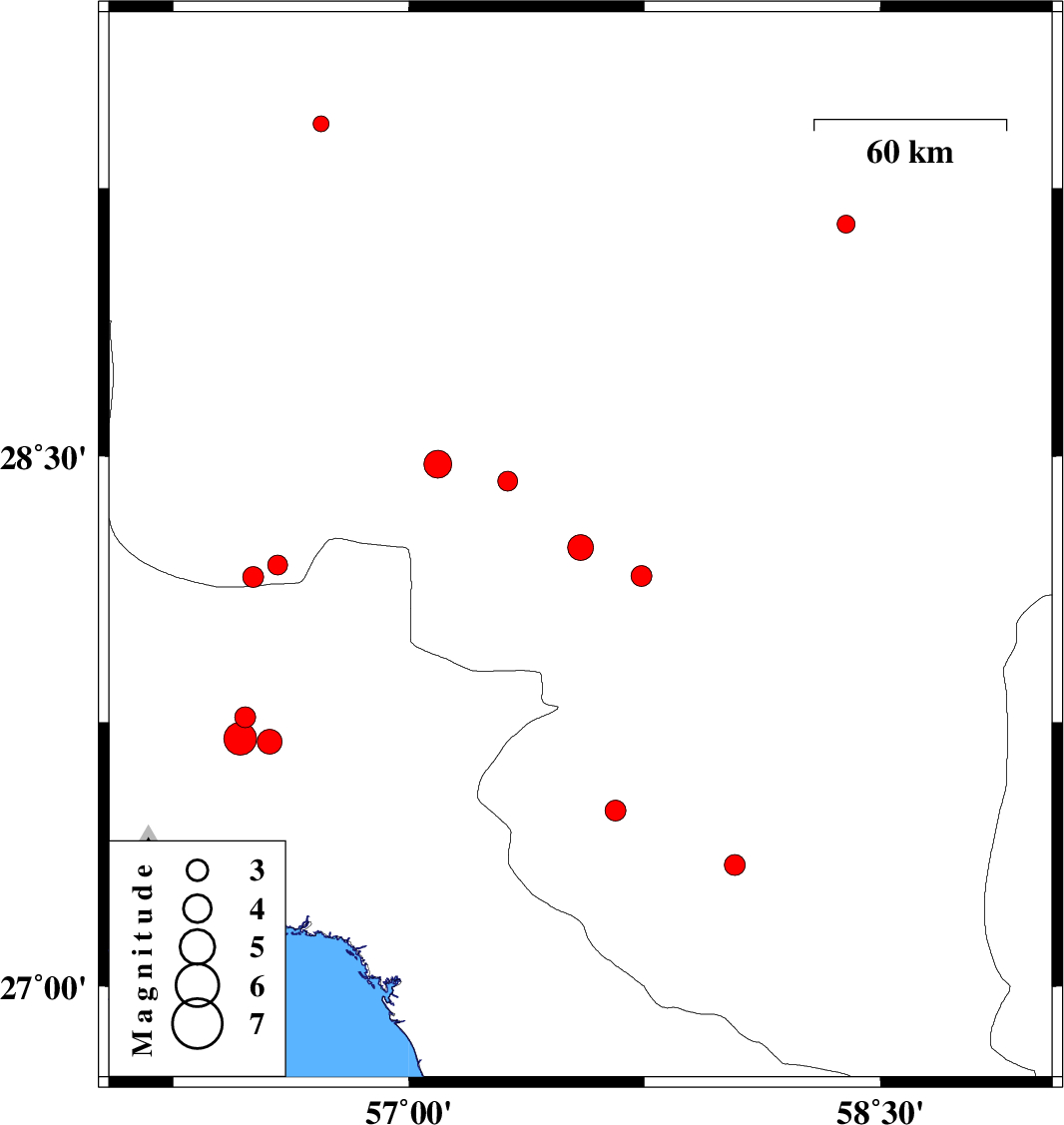 2016/06/28 | 18:49:09.5 | 23:19:09.5 | 28.429 | 57.314 | 14 | ML2.8 | Kerman Province, 49 km South-West of Jiroft | ||