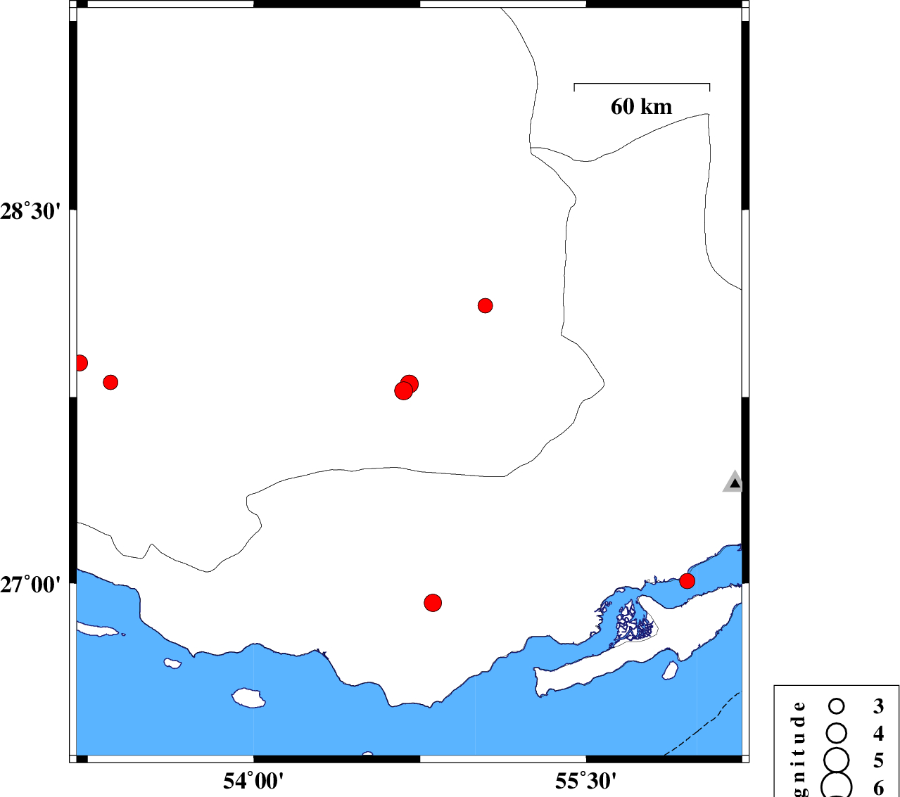 | 2016/07/12 | 22:43:05.3 | 03:13:05.3 | 26.921 | 54.808 | 15 | ML3.5 | Hormozgan Province, 44 km North of Bandar-e lengeh | ||