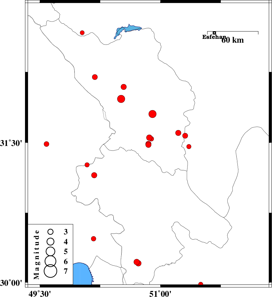 | 2016/07/31 | 08:09:05.3 | 12:39:05.3 | 31.487 | 50.85 | 15 | ML3.1 | Chaharmahal Bakhtiari Province, 4 km of Lordegan | ||